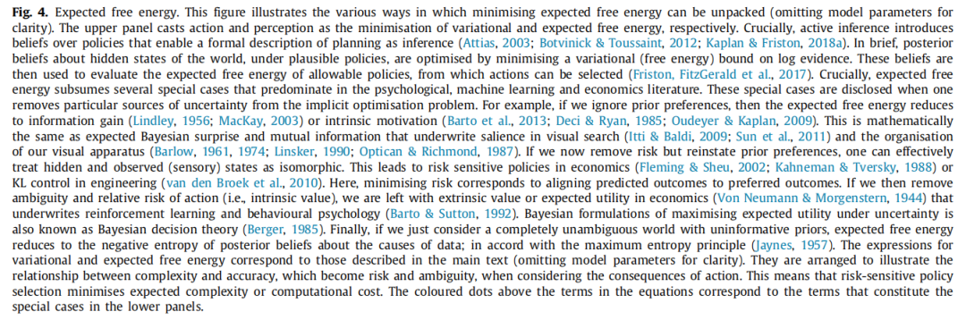 期望自由能是一个基本的构想。在本节中,我们解释其主要特征,并强调它与神经科学和工程学中许多现有理论的重要性。