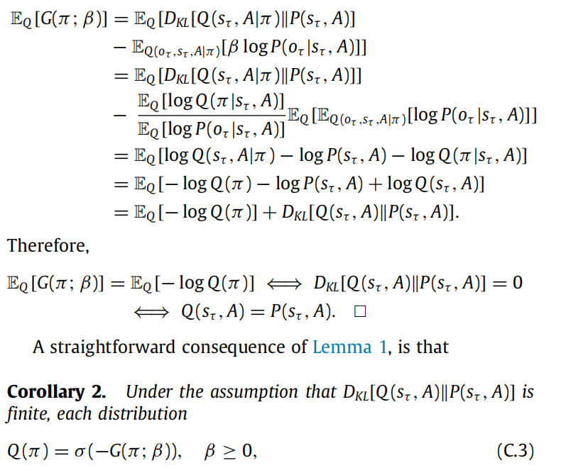 引理1的一个重要结论是,当(C.1)成立时,我们要么有DKL[Q(sτ , A)∥P(sτ , A)] = +∞ or DKL[Q(sτ ,A)∥P(sτ , A)] = 0,直观地说,
