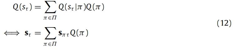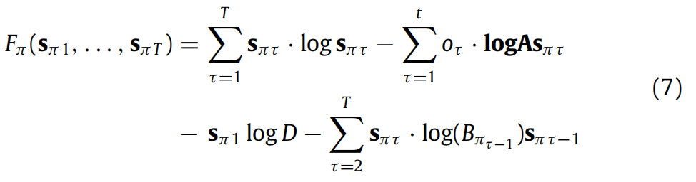 替换为其充分统计量(即参数向量sπτ),Fπ就成为这些参数的函数。这使我们能够方便地以矩阵形式重写(6)(有关详细信息,请参见附录B):