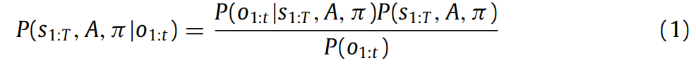请注意,策略 π 是一个随机变量。这意味着规划是从观察中推断出最佳动作序列(Attias,2003;Botvinick&Toussaint,2012)。计算后验分布需要计算模型证据