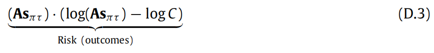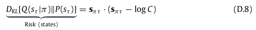 (D.1)中的风险项是跟随特定策略的预测状态与首选状态之间的KL散度。这可以表示为: