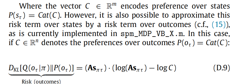当代理人的偏好C用于对状态的偏好进行表达时。当偏好用于对结果进行表达时(如目前在spm_MDP_VB_X.m),中实现的),风险项会改变