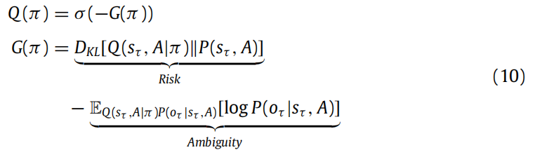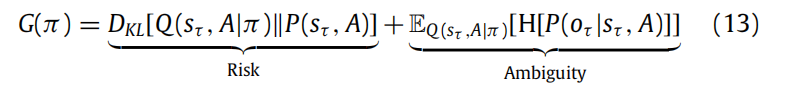 一种解释政策的期望自由能的方法有很多。也许最直观的是以风险和模糊性的角度来看: