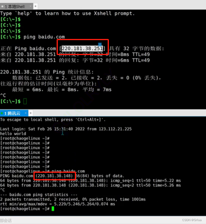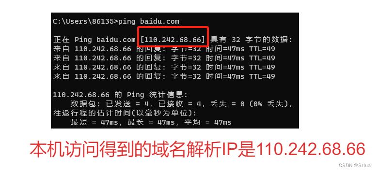 通过cmd命令行:使用ping命令,获取百度的ip地址