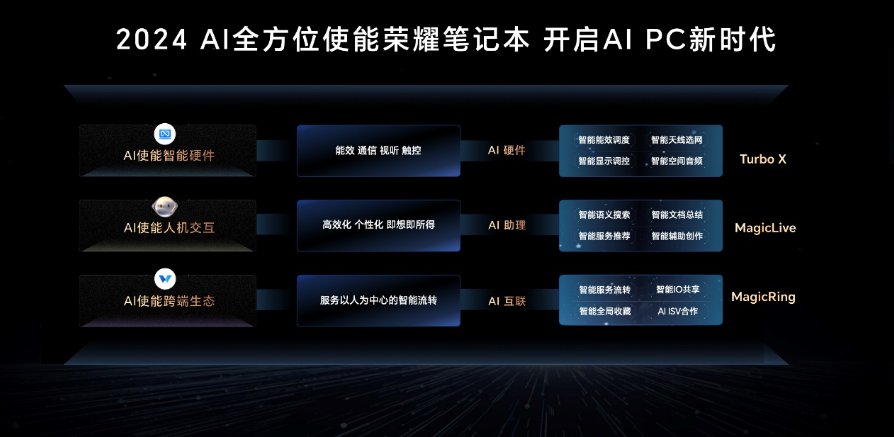 昨日,荣耀举行笔记本 AI PC 技术沟通会,公布了其领先的 AI PC 技术架构。荣耀笔记本将会把 AI 技术与用户体验全面融合,用 AI 使能智能硬件、人机交互和多端生态,开启 AI PC 新时代。