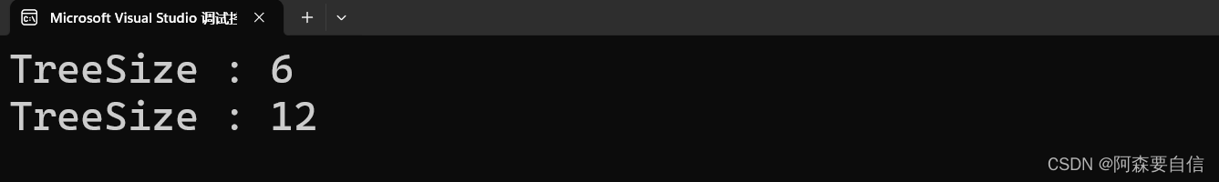 注意当我们TreeSize函数使用了static变量size来统计节点个数,static变量的值会在函数调用之间保留,所以第二次调用TreeSize时,size的值会继续增加,导致统计结果叠加。