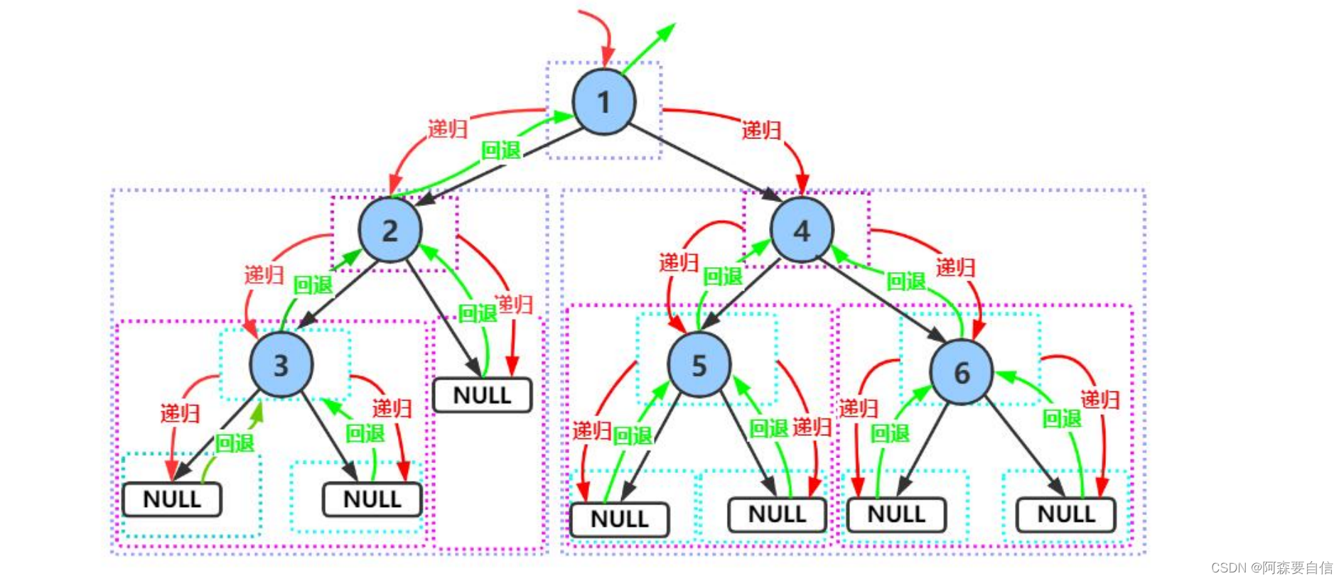 }前序递归图解:
