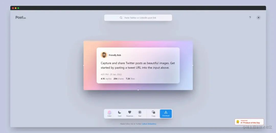 Poet.so 是一个免费的在线工具,可以帮助用户创建漂亮的代码片段高亮截图。它提供了一个简单的界面,让用户可以输入自己的代码,并选择不同的主题、字体和配色方案。用户还可以调整代码的对齐方式、行号、背景和阴影等等,以便更好地控制截图效果。Poet.so 还支持多种语言的代码,例如 JavaScript、Python、HTML、CSS 等等,可以自动高亮显示代码关键字。最终生成的截图可以直接下载或分享到社交媒体,非常方便。与其他类似的工具不同,Poet.so 还支持将代码片段转换为 Markdown 格式,以便更好地嵌入到文档中。
