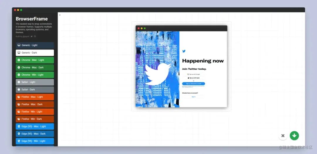 BrowserFrame 是一个免费的在线工具,可以帮助用户将网页截图嵌入到浏览器框架中,以便更好地展示网页效果。它提供了多种浏览器框架和设备类型,例如桌面浏览器、移动设备、平板电脑等等,用户可以根据需要选择不同的框架和设备类型。用户只需要输入要展示的网页 URL,BrowserFrame 就会自动加载网页并生成一个浏览器框架截图。用户还可以调整浏览器框架的大小、颜色和样式,以便更好地适应自己的需求。