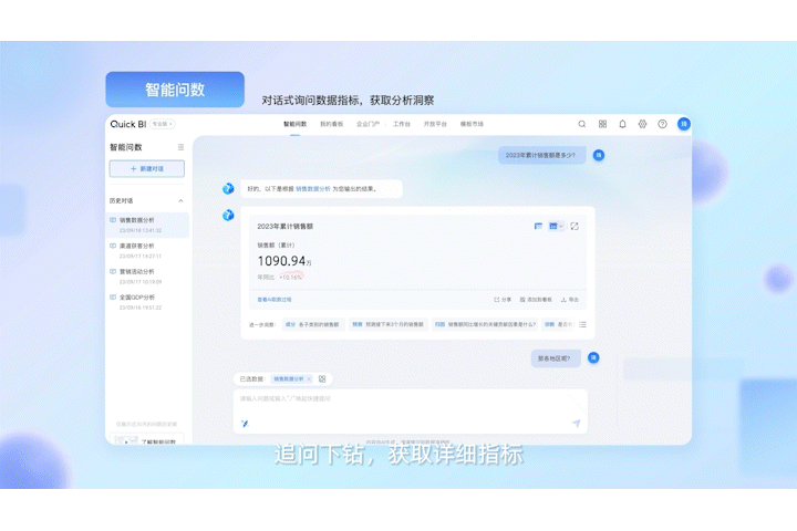 此外,随着用户的持续使用,Quick BI能够学习并适应用户的查询习惯和偏好,进一步提升查询的相关性和个性化。这种基于大模型能力的持续进化,确保了智能问数功能能够随着时间不断优化,更好地服务于用户的业务需求。