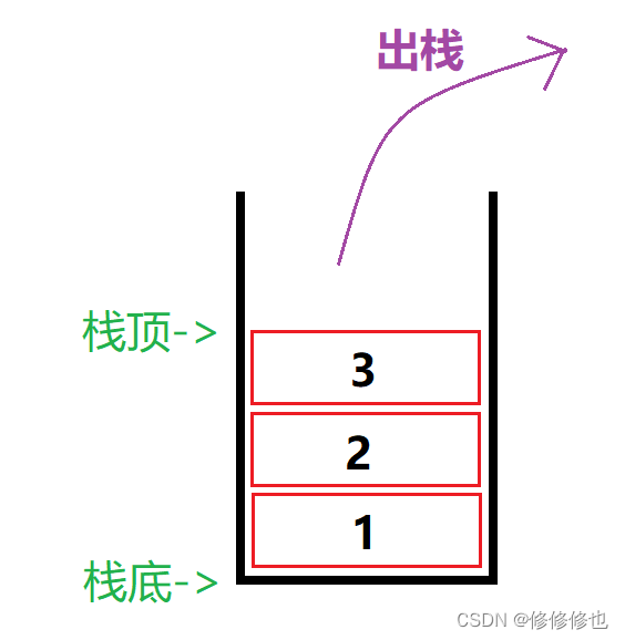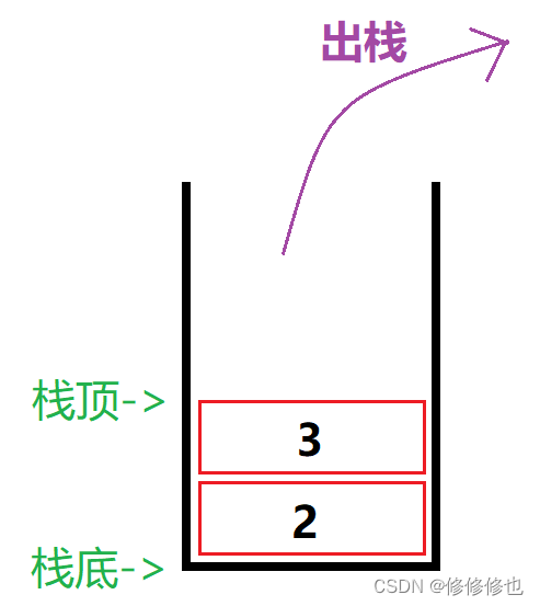 3出栈后,栈内元素情况是这样的: