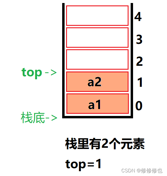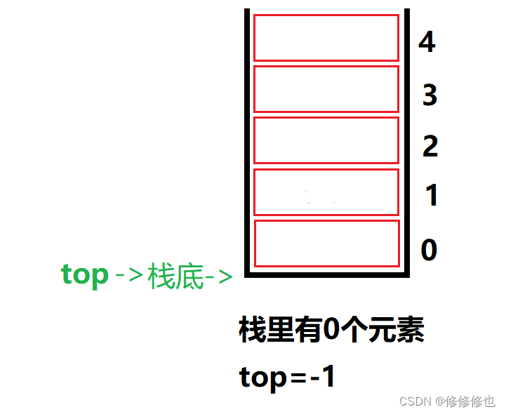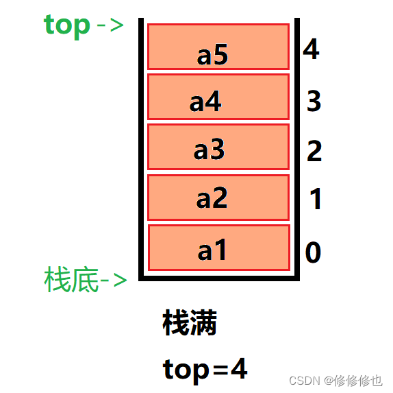 若现在有一个顺序栈,capacity是5,则栈普通情况,空栈和满栈的情况示意图如下: