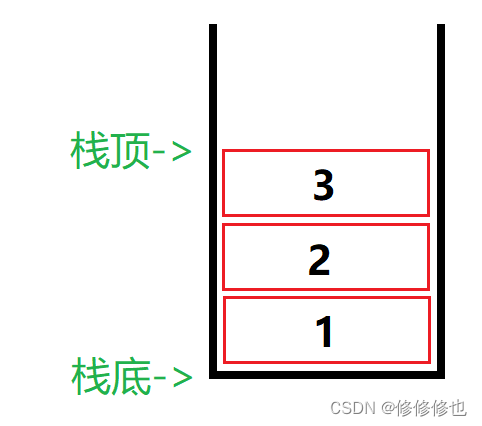 首先,要出3的话,那么3肯定进栈了.按照1,2,3的进栈顺序,3进栈了,那么1,2肯定已经进栈了,所以3出栈时栈内的情况应该是这样的: