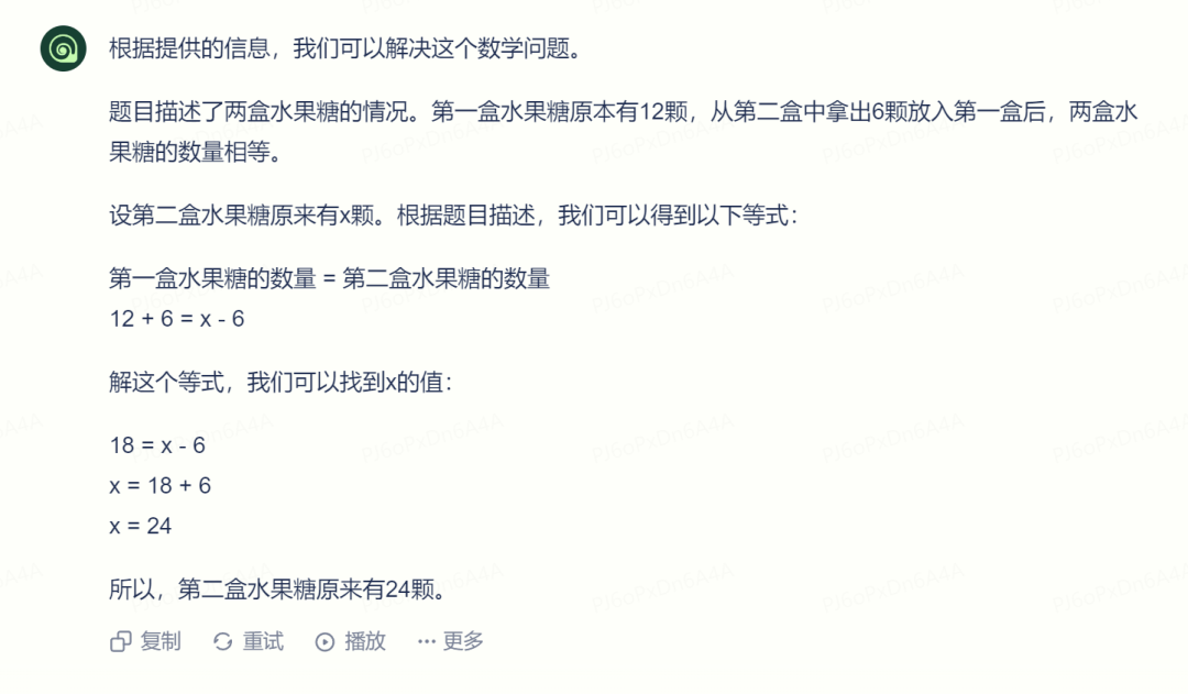 因为没有事先给出任何提示,“海螺 AI ”直接用设未知数的方式解答: