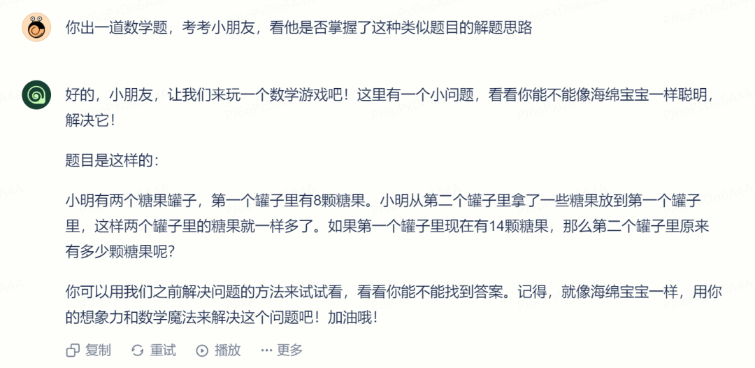 孩子说自己懂了,我们又让“海螺AI”出题考考是不是真掌握。不过新题目只是换了个数字,没有什么挑战性: