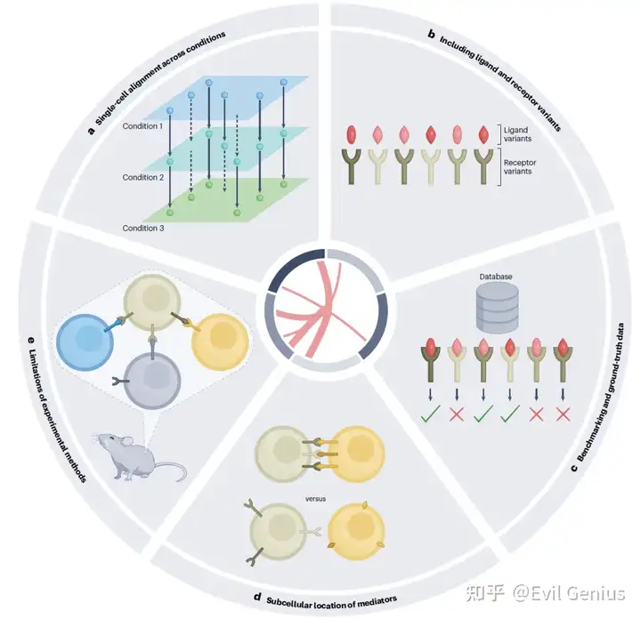 生成真实数据多年来一直是一个重大挑战:为了解决这个问题,正在开发真实交互的精选数据库,以帮助基准测试和调整计算工具。此外,努力生成金标准数据集对于通过适当的指标(如准确性、精密度、召回率、f分数和均方根误差)评估工具性能至关重要。建立此类参考数据的尝试通常涉及从文献中手动整理CCIs,包括不同的细胞类型和分子介质,如CITEdb和Cellinker所示。