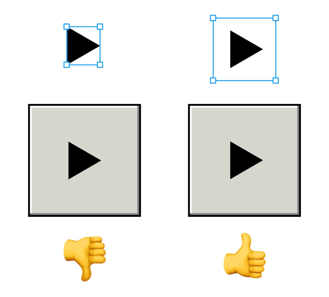 作为开发人员,我们只能通过数学的方法实现矩形的完美对齐。因此,对于任何需要手动补偿的内容,可以将其放置在一个足够大的矩形中,并在其中实现图标视觉效果的平衡: