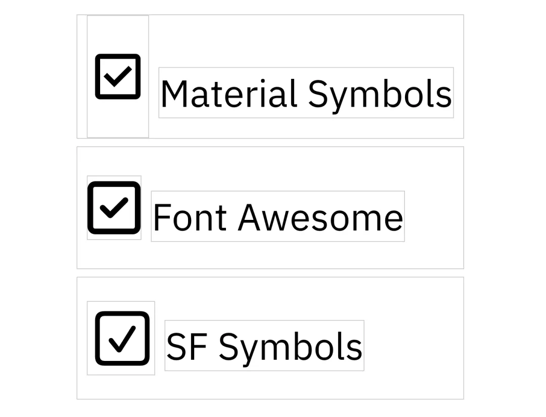 对齐矩形相对简单。对齐文本则很困难。图标是矩形。如果我们把图标放到字体文件中会怎样呢?