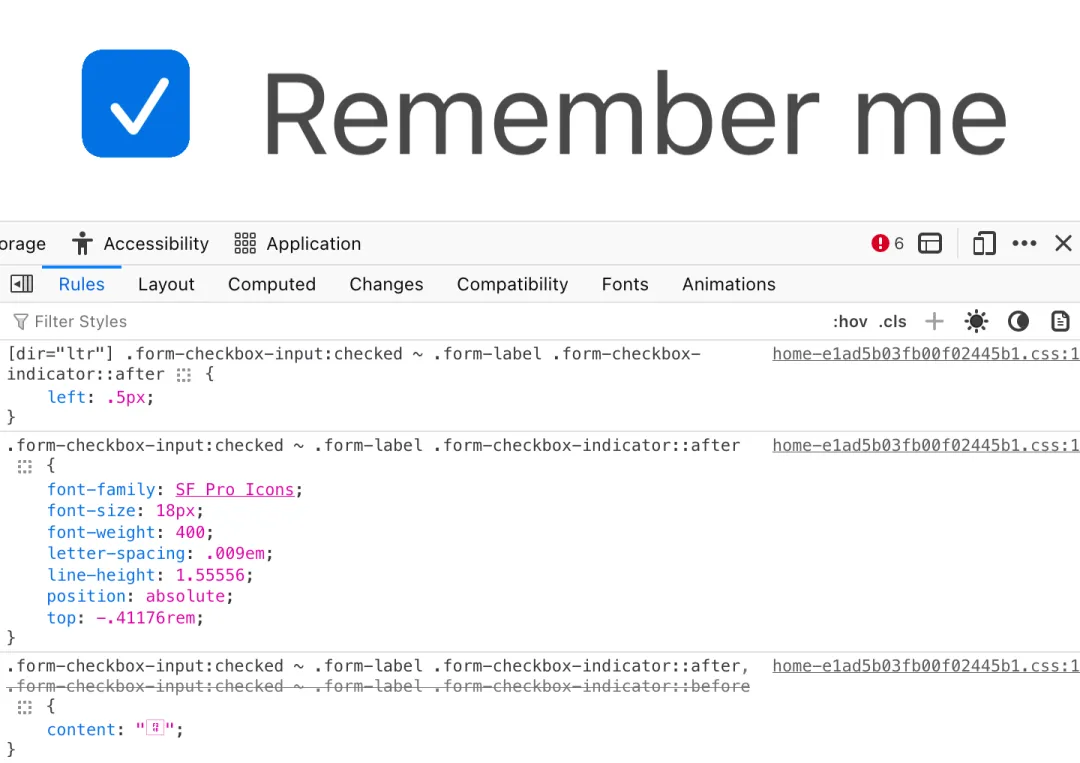 看看苹果公司怎么费力地将复选标记放入矩形内,以及将矩形放到文本标签旁: