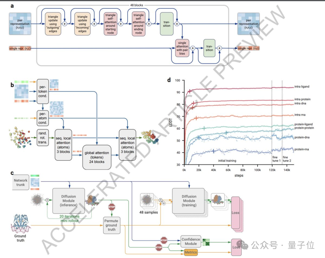 AlphaFold 3建立在AlphaFold 2的基础上,但在架构和训练过程上有很大改进: