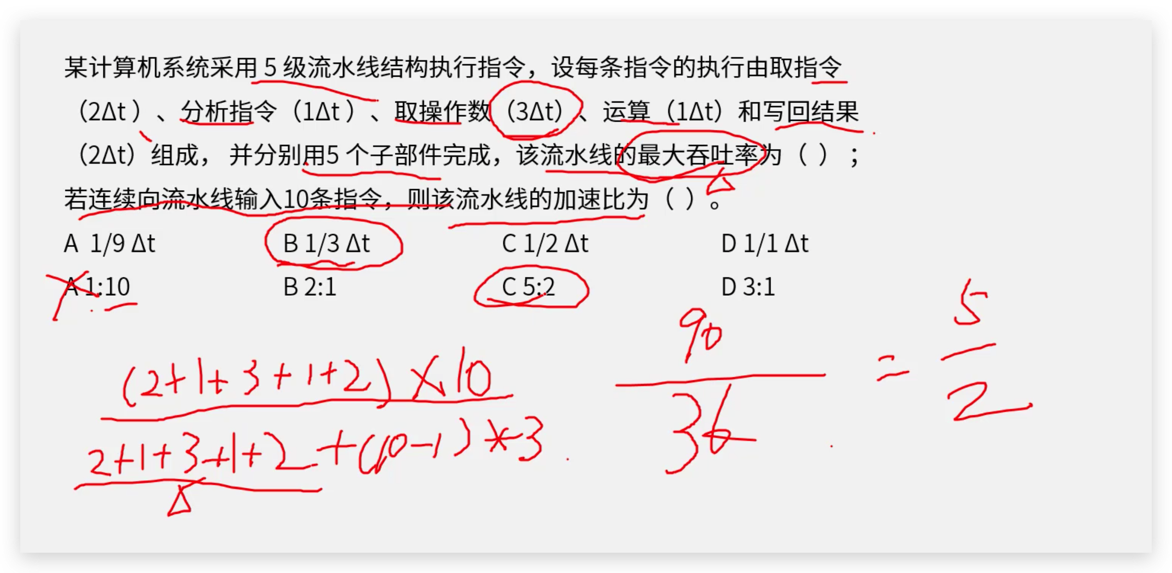 - 答案:C。吞吐率衡量的是流水线的性能,即单位时间内完成的任务数量。