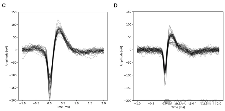 FinalSpark表示,“我们比较了此 ALI 装置的记录特性与监测浸没式类脑器官的 MCS MEA (60MEA200/30iR-Ti),使用完全相同的 Intan 系统进行电压转换。下图显示了分别使用 ALI 和浸没式装置记录的动作电位叠加图,并显示了相似的信号特性。