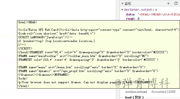 var pass = decipher.finish(); // 解密完成的标志,完成之后会开始渲染 HTML。
