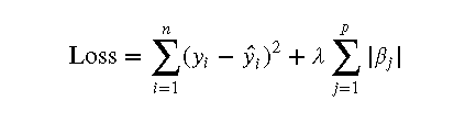 Lasso回归: Lasso回归通过在损失函数中加入参数的绝对值和惩罚项,来进行特征选择和防止过拟合。其损失函数如下: