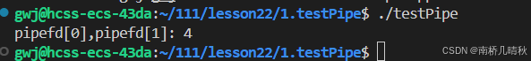 //如果管道创建成功,使用 std::cout 打印管道的两个文件描述符 pipefd[0] 和 pipefd[1] 的值
