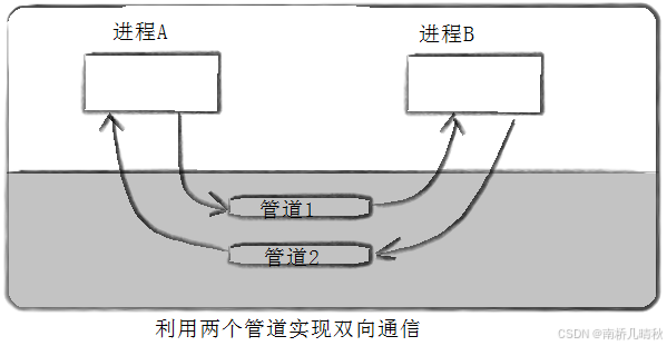 为什么管道是单向通信的? 方式简单,减少开发成本,只让它进行单向通信,任何一个文件刷新到缓冲区里,再把数据刷新到文件里,这个过程本身就是单向的。 生活中我们见到的简单管道都是单向的,比如自来水管道,一个入口一个出口,符合管道的特点。