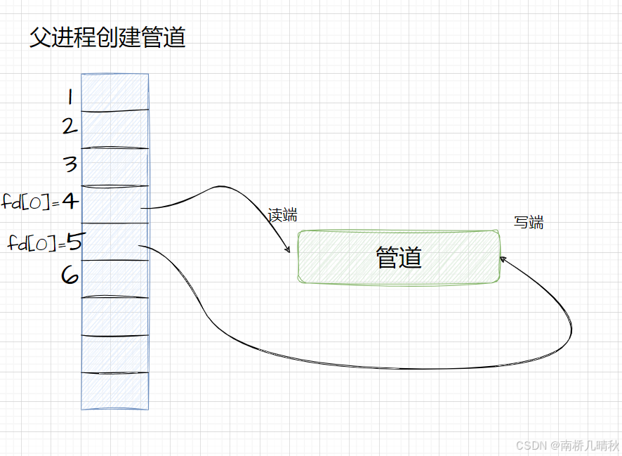 pipefd[0]->0->管道文件R(读)端、pipefd[1]->1->管道文件W(写)端