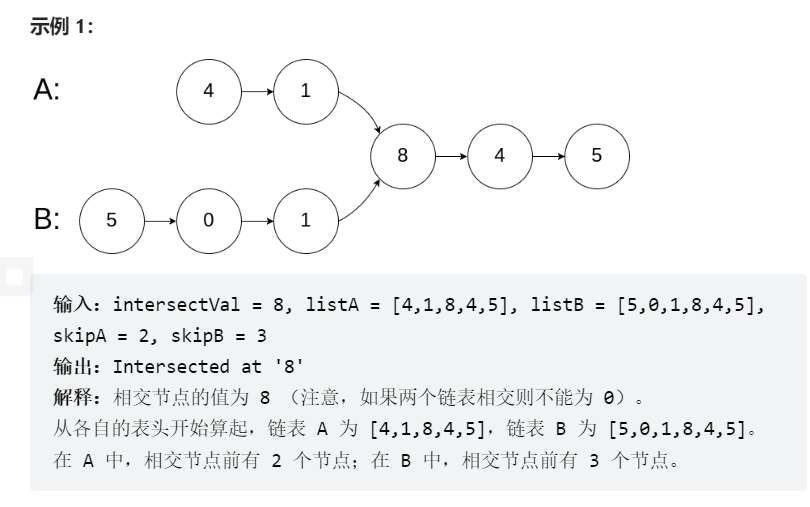 };力扣链接:https://leetcode.cn/problems/intersection-of-two-linked-lists-lcci/