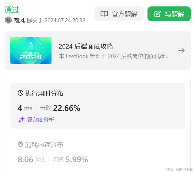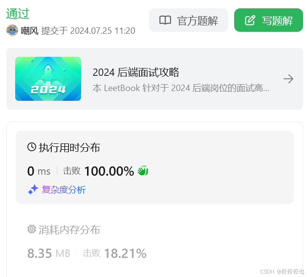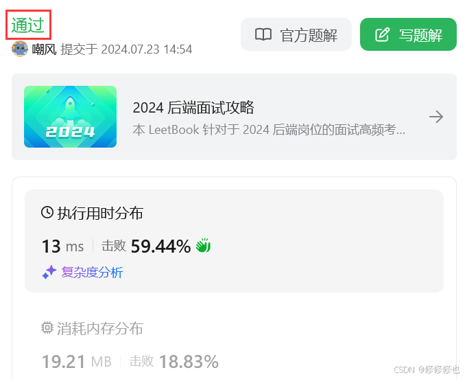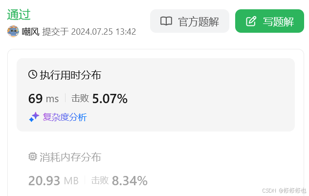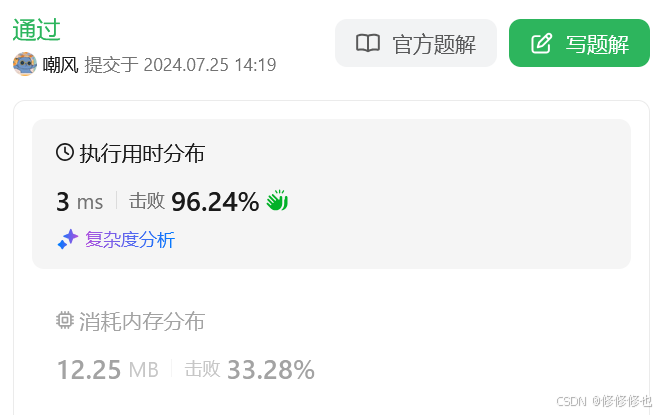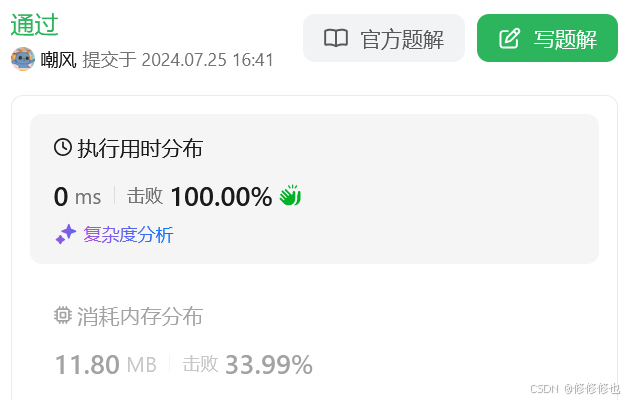 ((test >> i) & 1) == 1:最终的判断是检查上面的操作结果是否等于 1。1,则说明原始的 test 在第 i 位上是 1;如果结果是 0,则说明第 i 位上是 0。提交运行: