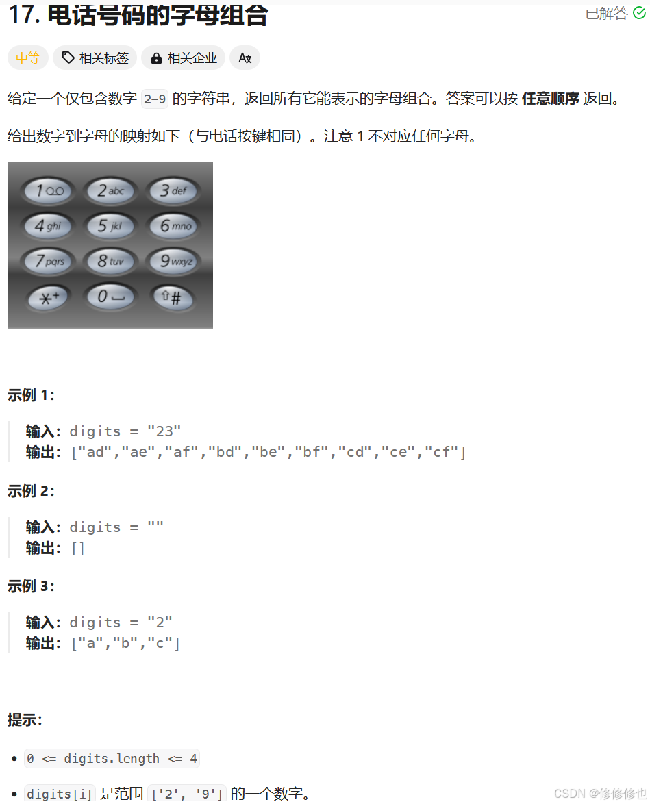 https://leetcode.cn/problems/letter-combinations-of-a-phone-number/