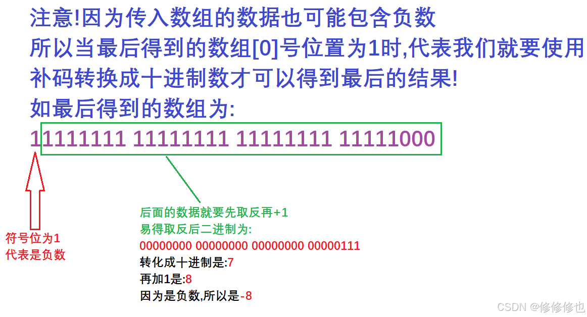 还有一点需要注意的是,如果结果为负数,我们要按补码的方式计算十进制数:
