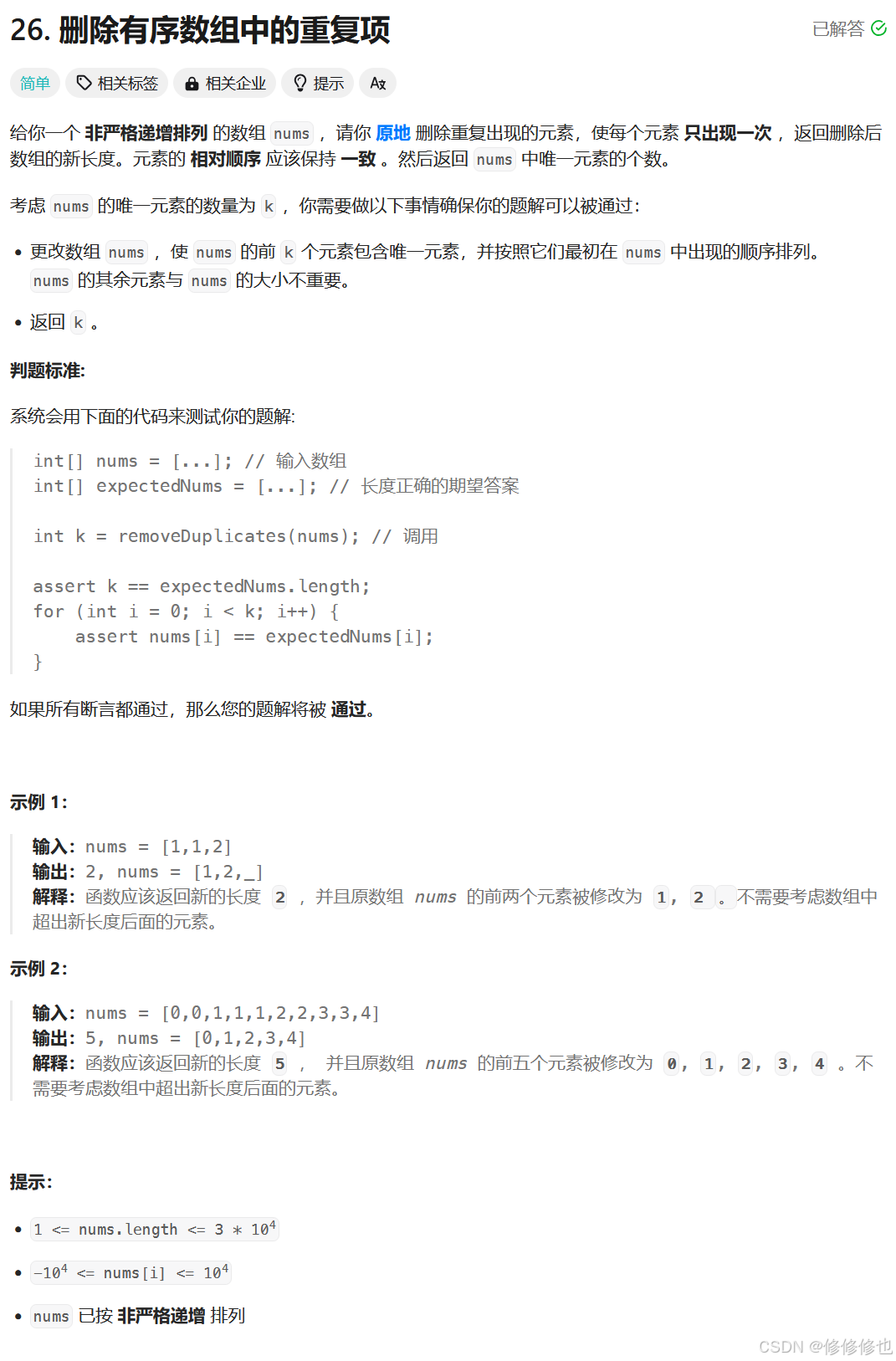 https://leetcode.cn/problems/remove-duplicates-from-sorted-array/