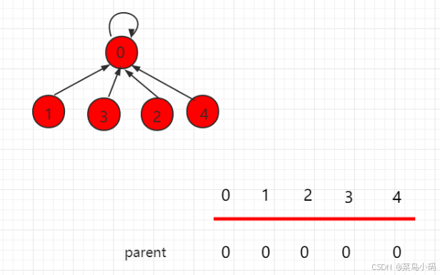 // 初始化每个元素的父节点为其自身