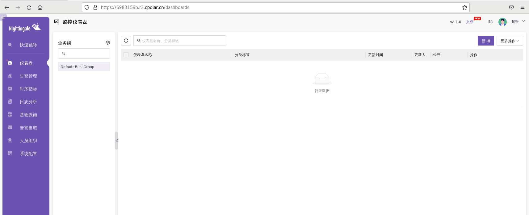 使用上面的https公网地址在任意设备的浏览器访问,即可成功看到我们Nightingale界面,这样一个公网地址且可以远程访问就创建好了.