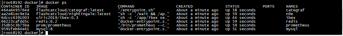 docker-compose up -d等待下载安装成功后,执行docker ps 即可看到运行的容器