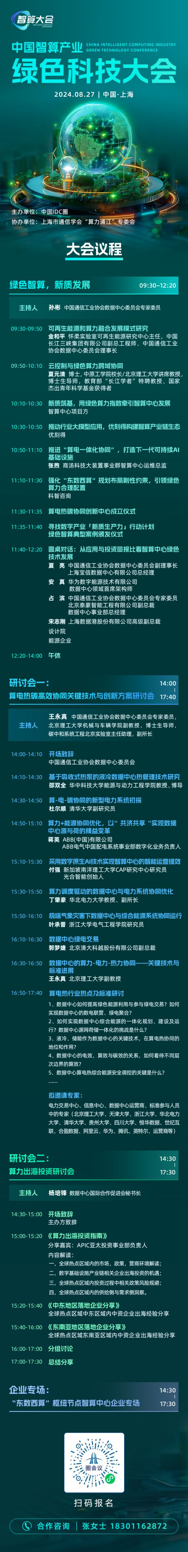 绿色节能与出海是当前行业热点,大会聚焦这两个层面,将举办算电热碳高效协同关键技术与创新方案研讨会、算力出海投资研讨会。