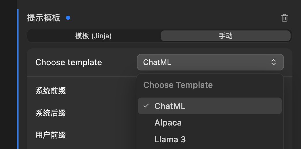 print(response)注意,此时必须设置 lmstudio 的提示模板位 ChatML: