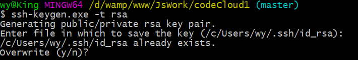 ssh-keygen.exe -t rsa //输入命令后一路回车因为之前创建过,所以创建会有提示是否覆盖,一旦覆盖又要改码云上的,所以直接百度一个图,效果是一毛一样的!