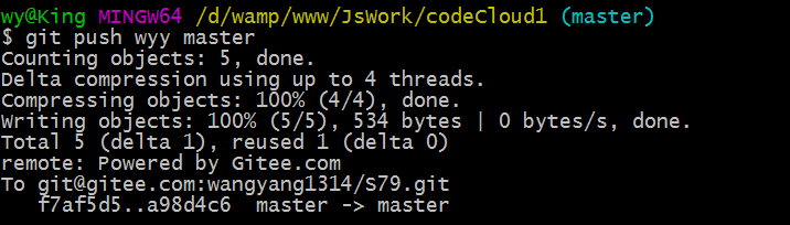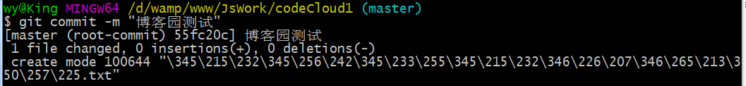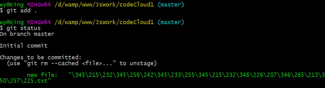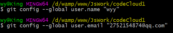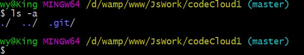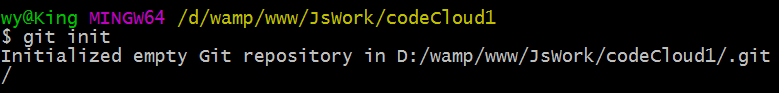 Initialized empty Git repository in D:/wamp/www/JsWork/codeCloud1/.git / //出现这句话就代表着初始化成功