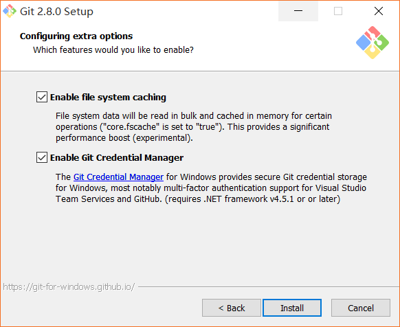 7.选择 : 系统文件缓存 和 git的管理器(需要.net v4.5.1)