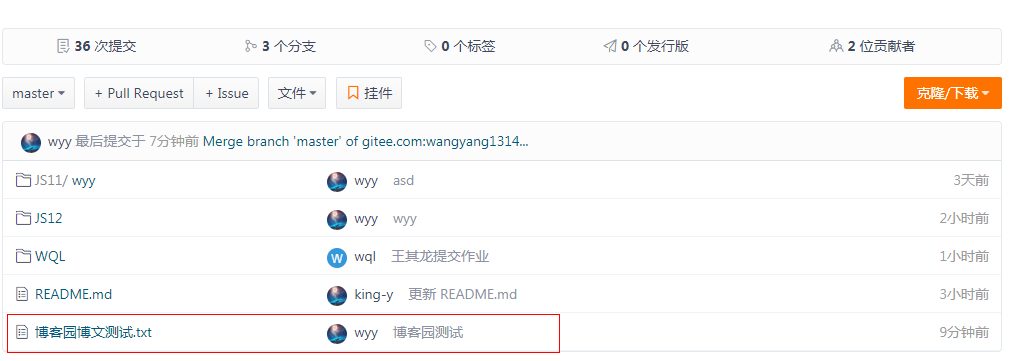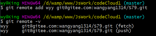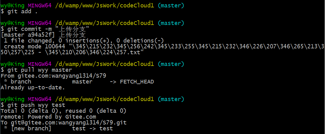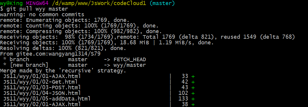 git pull wyy master 拉取远程文件 因为内容一致,所以只是显示更新一下