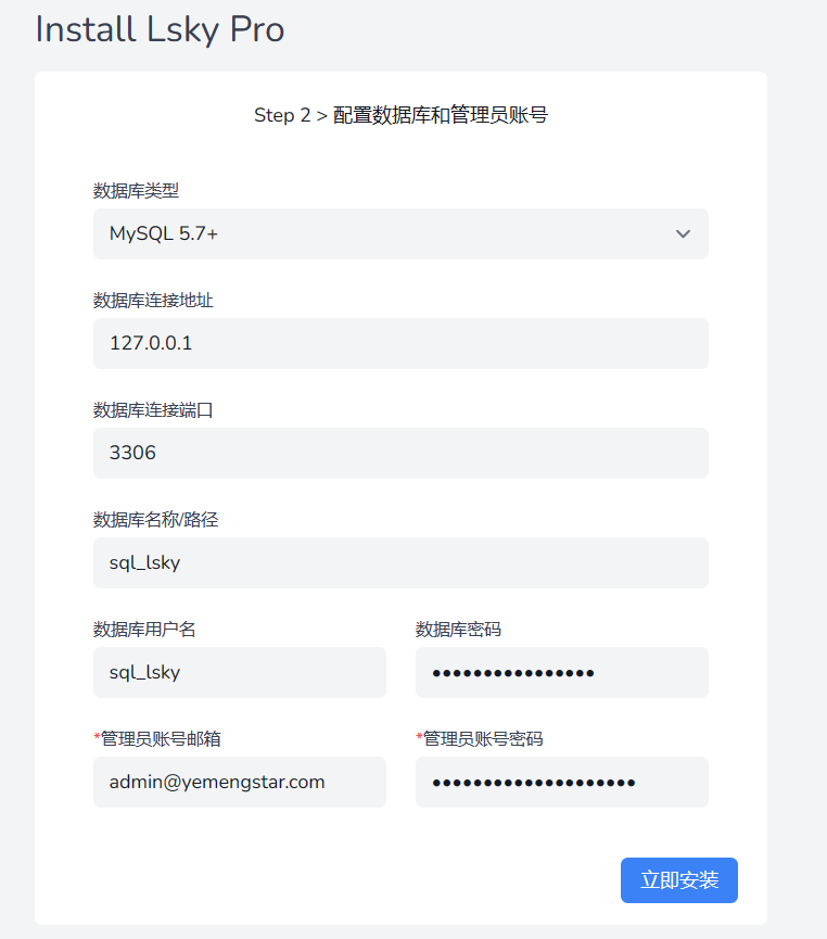 安装文档:安装 | Lsky Pro
