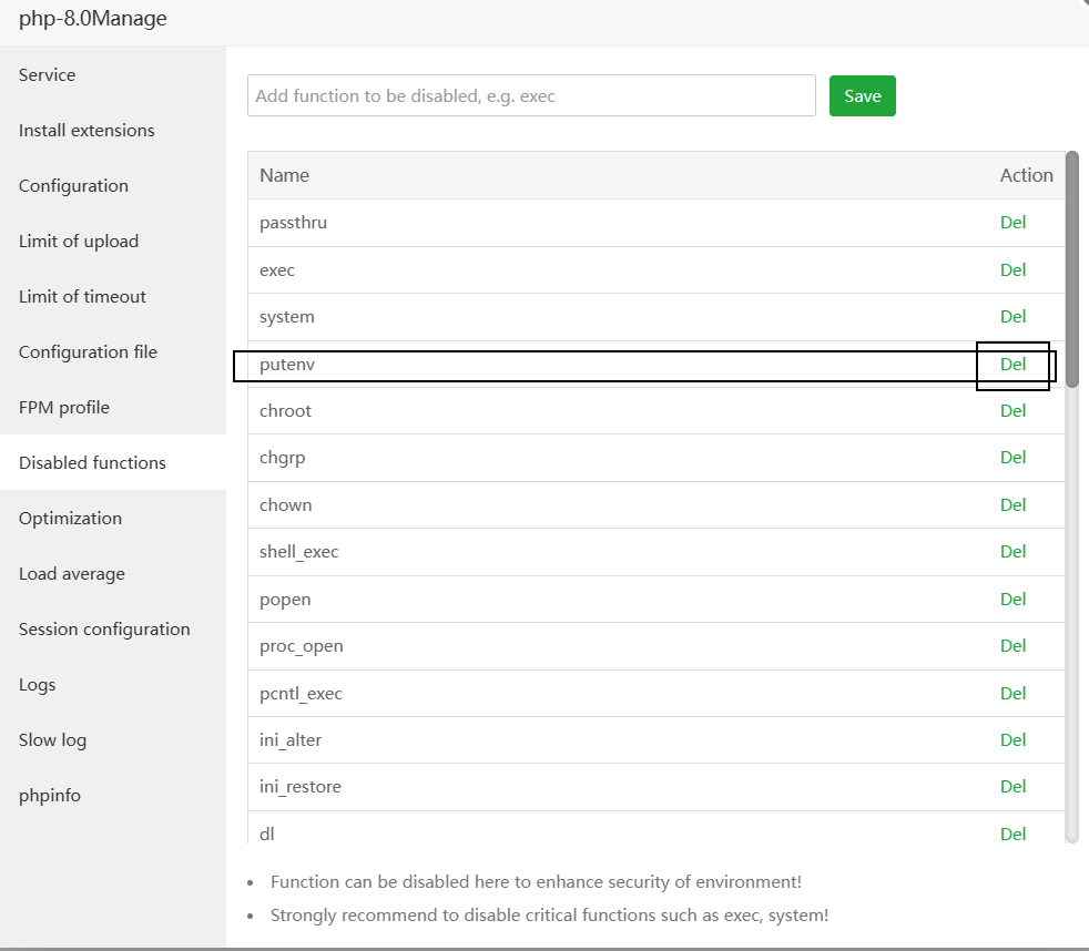 找到对应的函数点击Del删除即可!