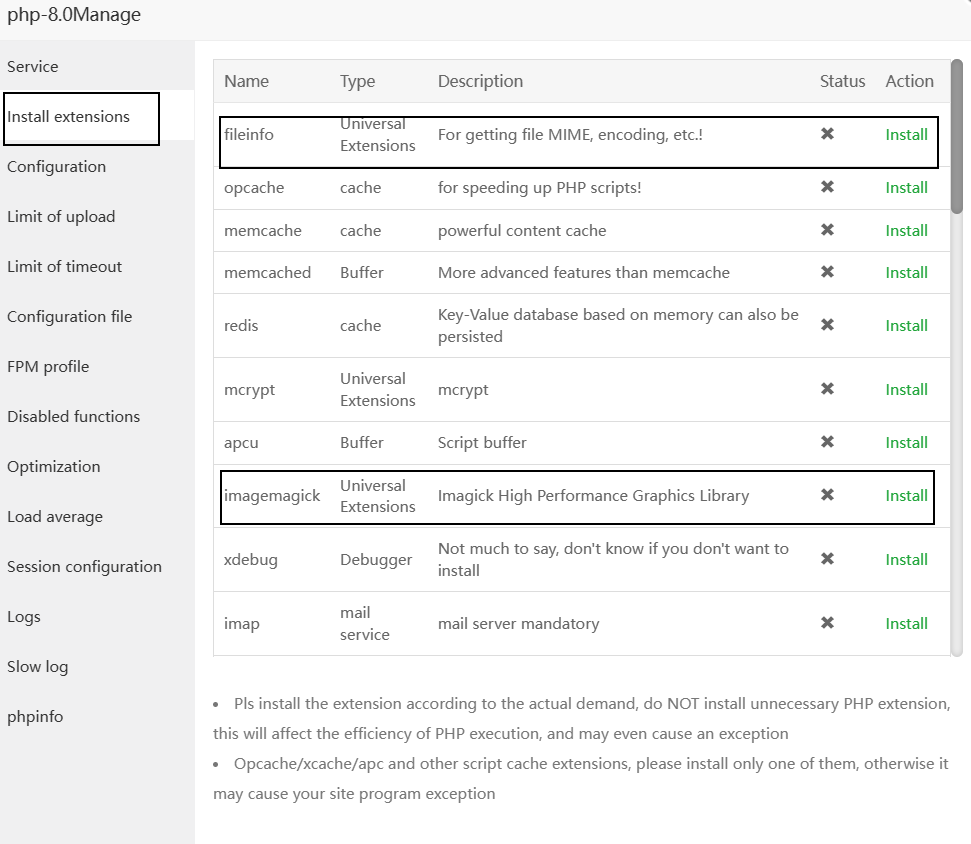 我们的PHP需要安装以下扩展: