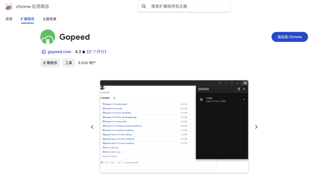 Gopeed 还提供了浏览器扩展插件,用于接管浏览器的下载任务,支持 Chrome、Edge、Firefox 等主流浏览器。