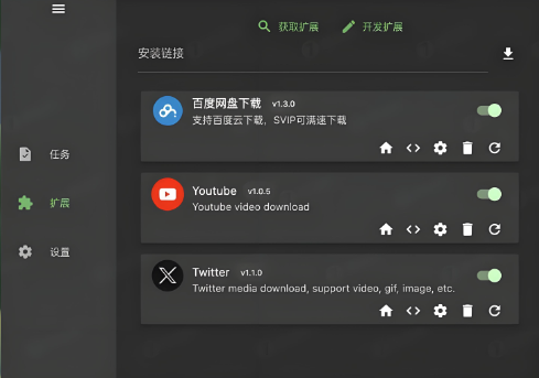 浏览器扩展 | Chrome、Edge、Firefox | 集成到浏览器的下载扩展 | Chrome、Edge |